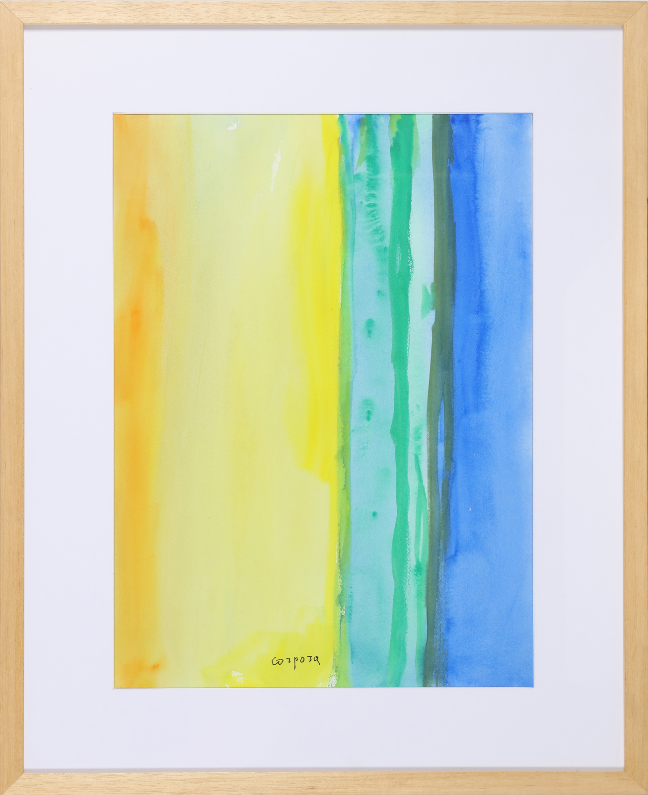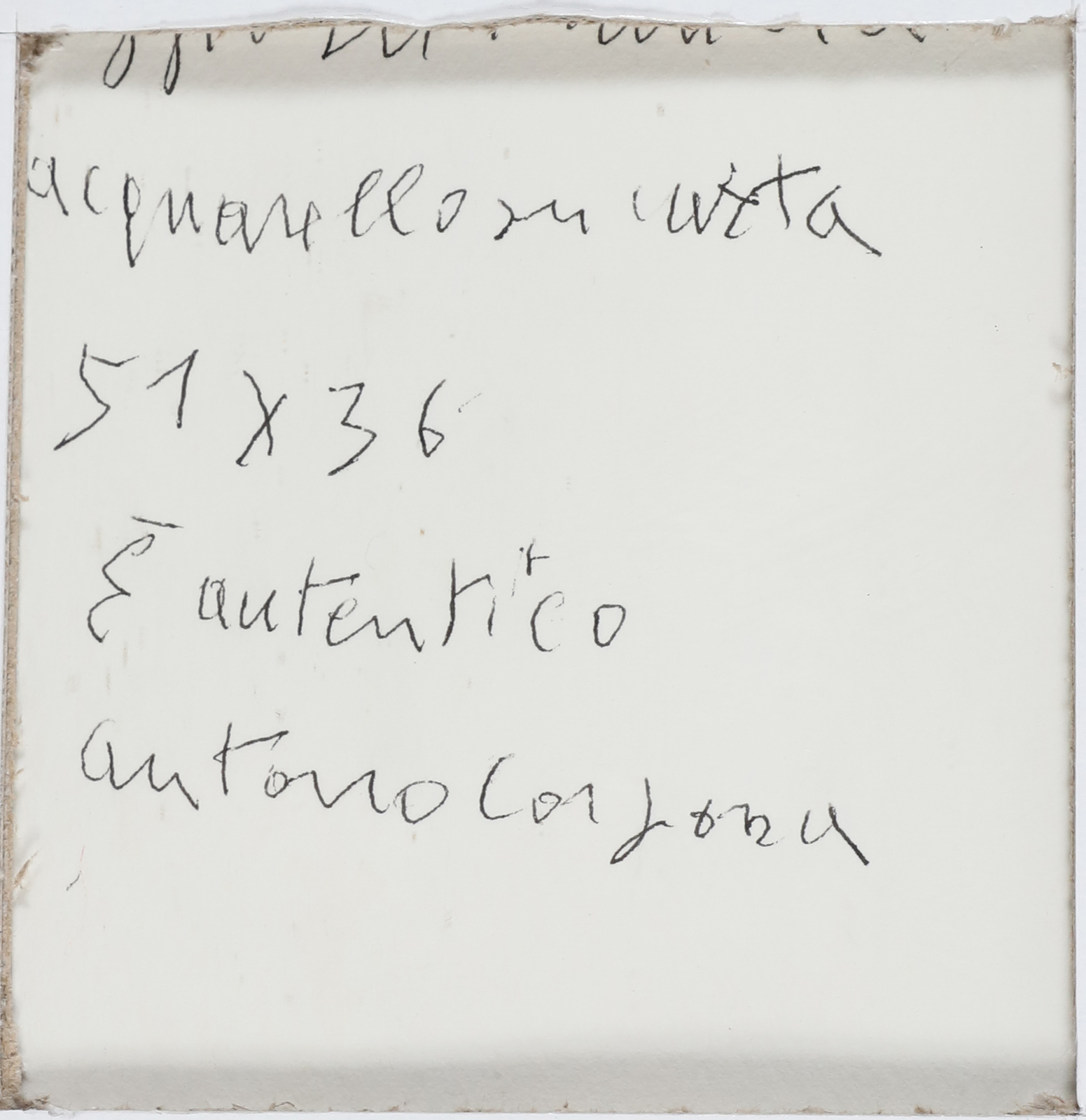 CORPORA ANTONIO (1909 - 2004) Viaggio in Francia. . 2002. Acquarello su carta. Cm 36,00 x 51,00. Firma in basso al centro. Al retro firma per autentica. Opera archiviata presso l'Archivio Corpora - Giovanni Di Summa, come da documentazione fotografica allegata all'opera, riportante il relativo numero di inventario. . Cornice presente