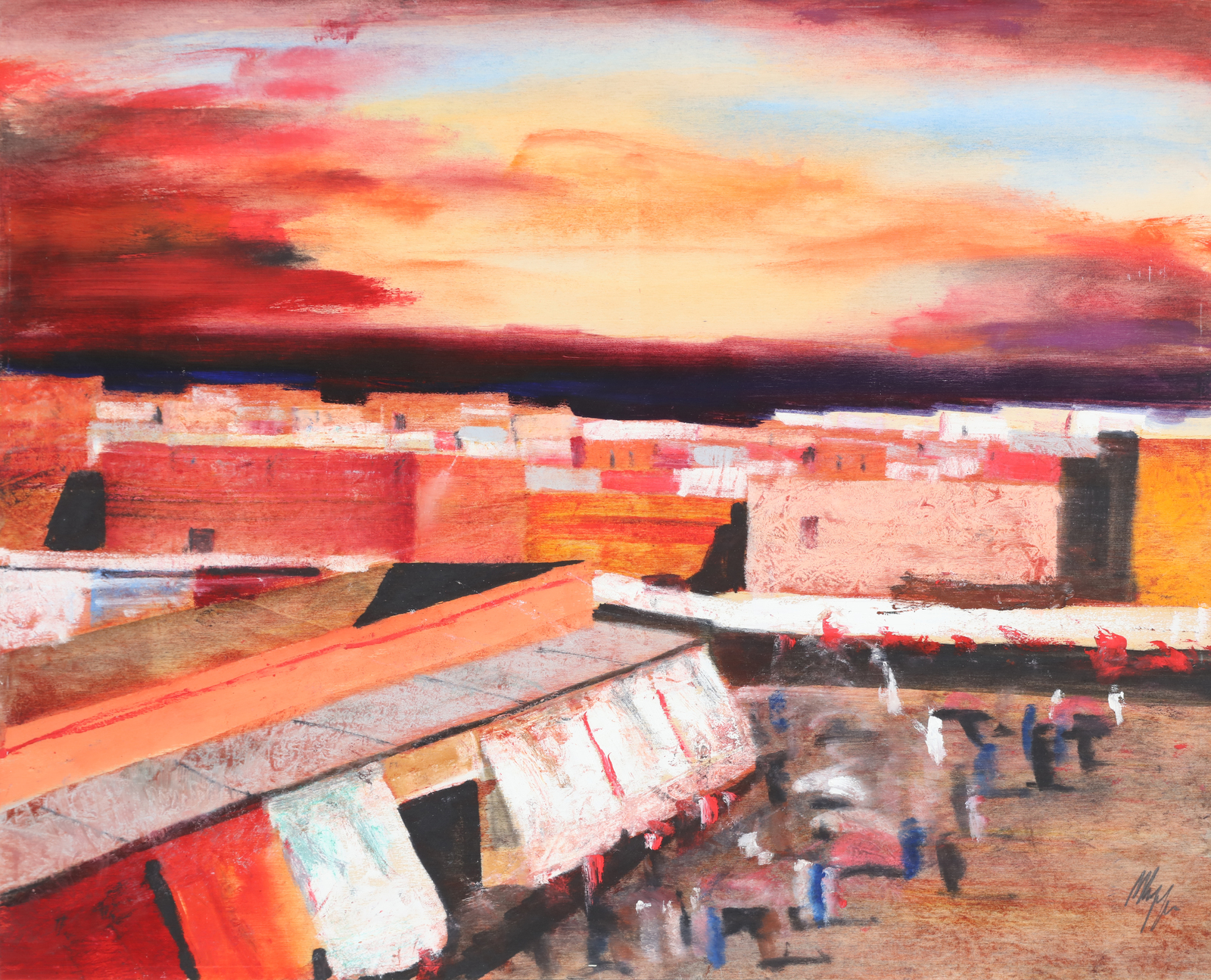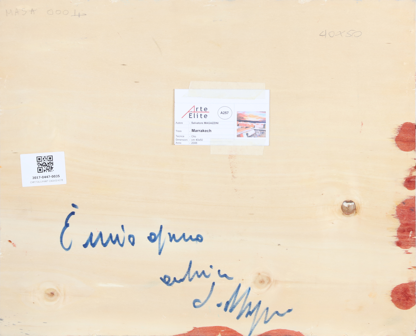 MAGAZZINI SALVATORE (n. 1955) Marrakech. Olio su tavola. Cm 50,00 x 40,00. Firma in basso a destra. Al retro firma per autentica e cartiglio descrittivo Arte Elite.