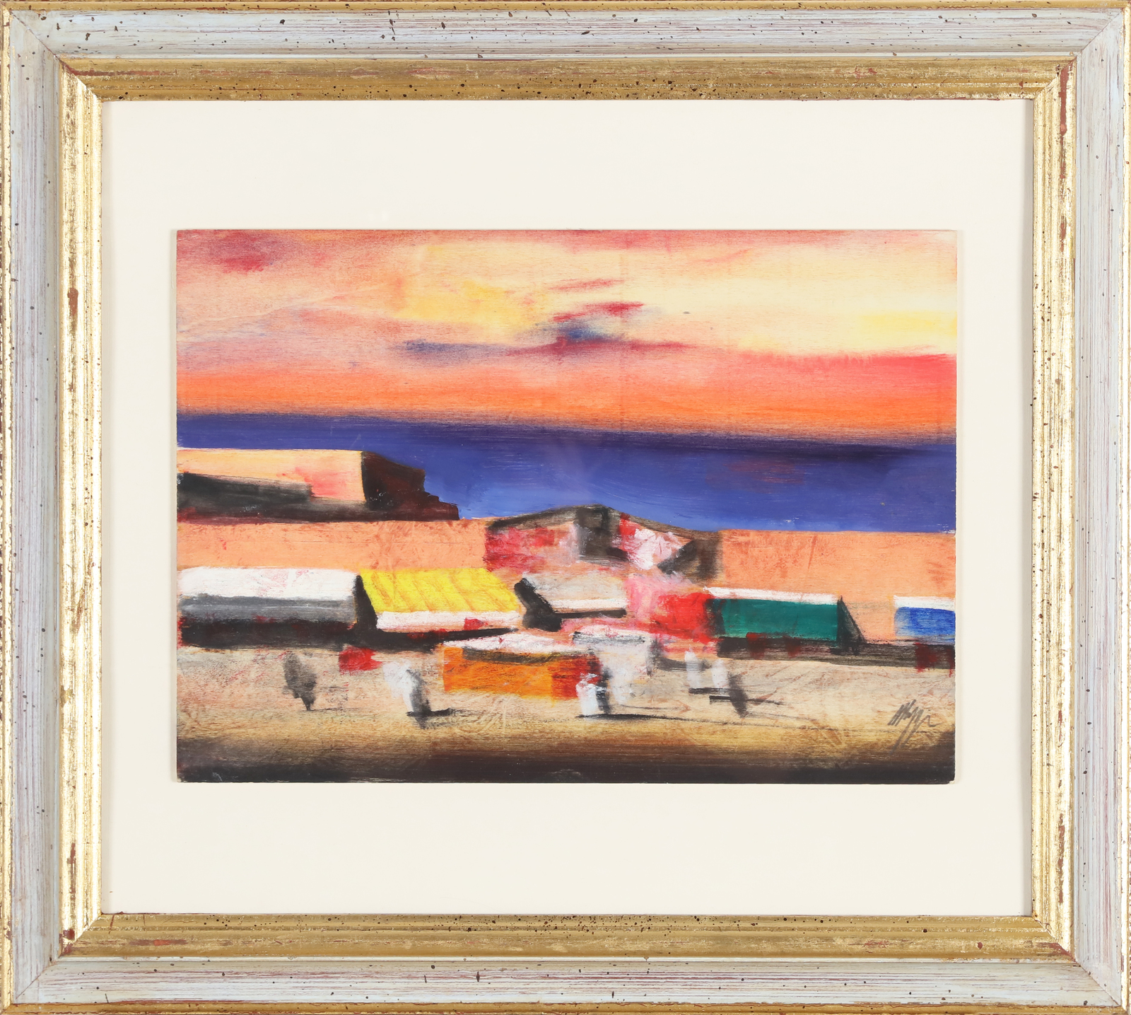 MAGAZZINI SALVATORE (n. 1955) Marrakech. Olio su tavola. Cm 30,00 x 20,00. Firma in basso a destra. Al retro titolo e firma per autentica. . Cornice presente