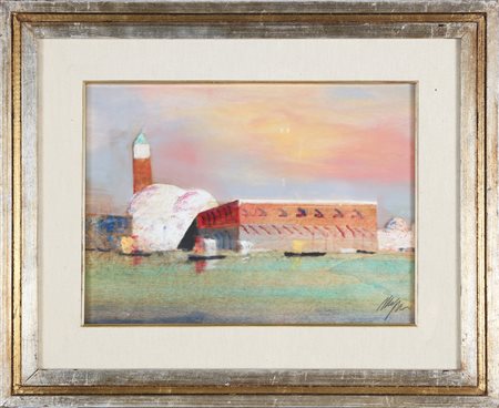 MAGAZZINI SALVATORE (n. 1955) Venezia. Olio su tavola. Cm 40,00 x 30,00. Firma in basso a destra. Al retro titolo e firma per autentica. . Cornice presente