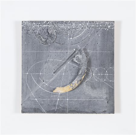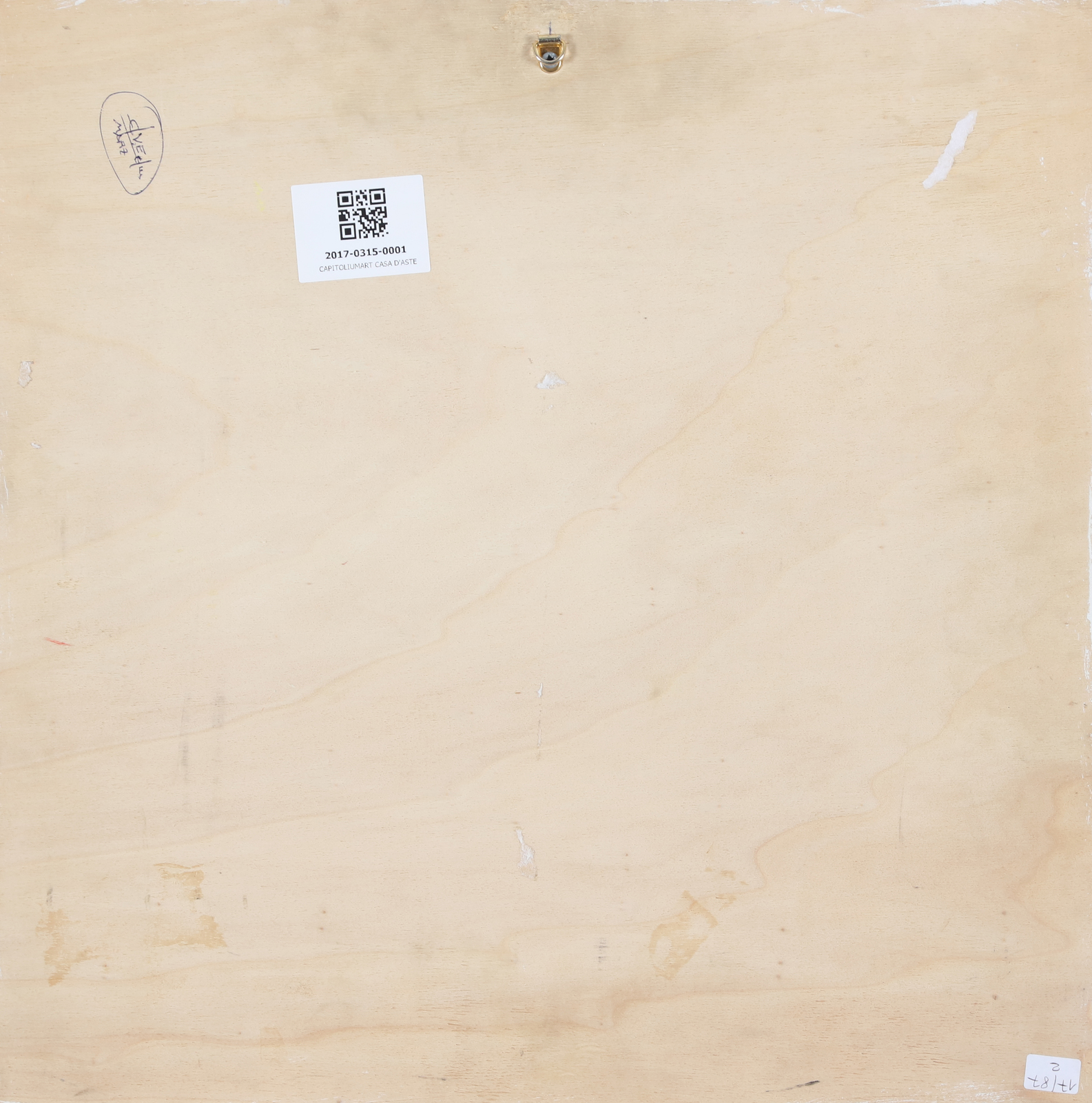 VALENTINI WALTER (n. 1928) Senza titolo. . Tecnica mista su tavola. Cm 30,00 x 30,00. Opera contenuta in una teca di plexiglass. Autentica dell'artista su fotografia. Cornice presente