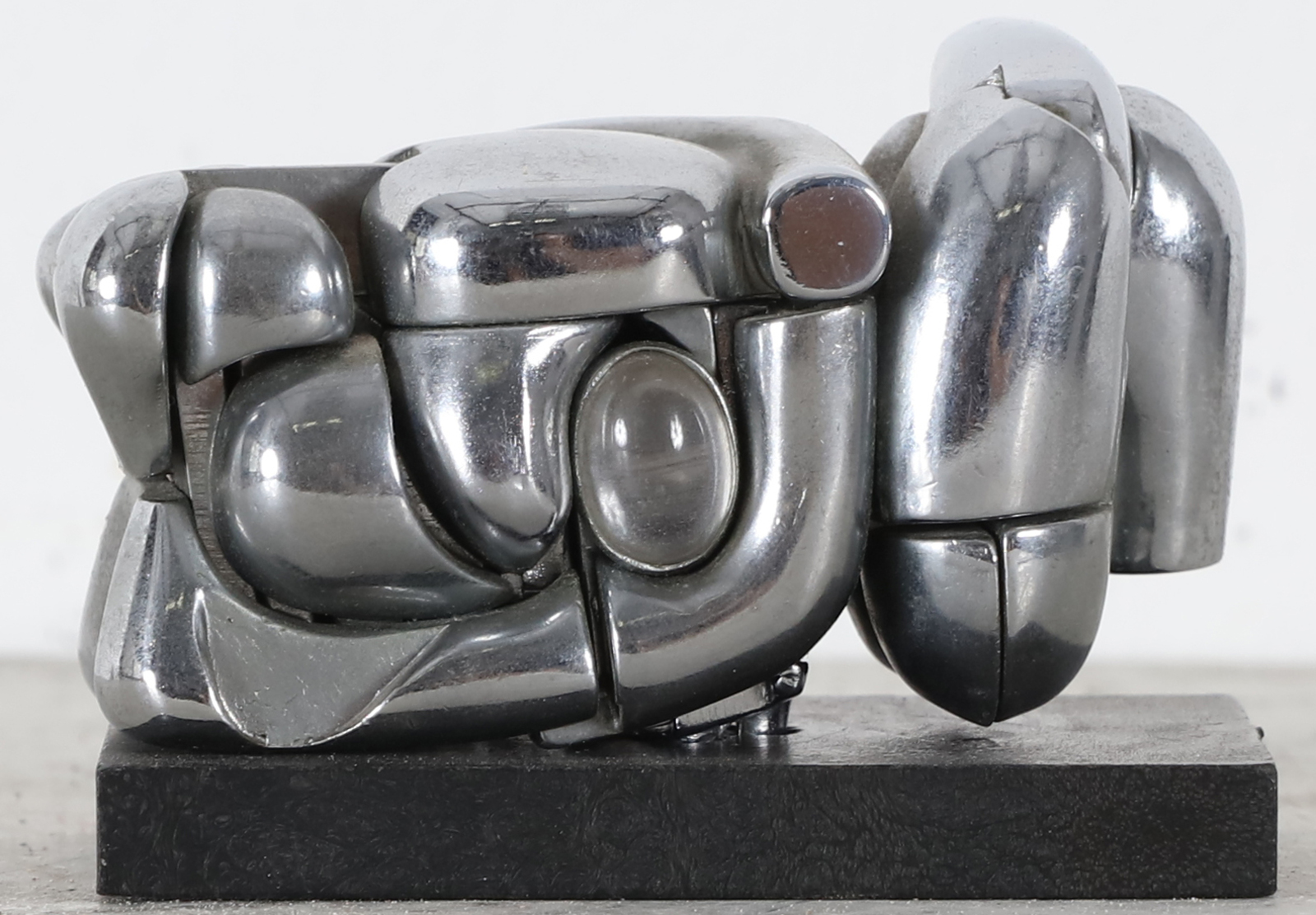BERROCAL MIGUEL ORTIZ (1933 - 2006) Mini Maria. Metallo. Cm 7,50 x 4,50 x 4,50. 2859/10000. Tiratura e firma incise sotto la base. Scultura smontabile composta da 23 pezzi. Libro delle istruzioni per il montaggio allegato all'opera, Berrocal - La Mini Maria, Collection Mini multiples, Multicetera, 1970. Pubblicazione: Berrocal, Tipografia Cremezzani, Brescia, 1974, pag.11, allegata all'opera.