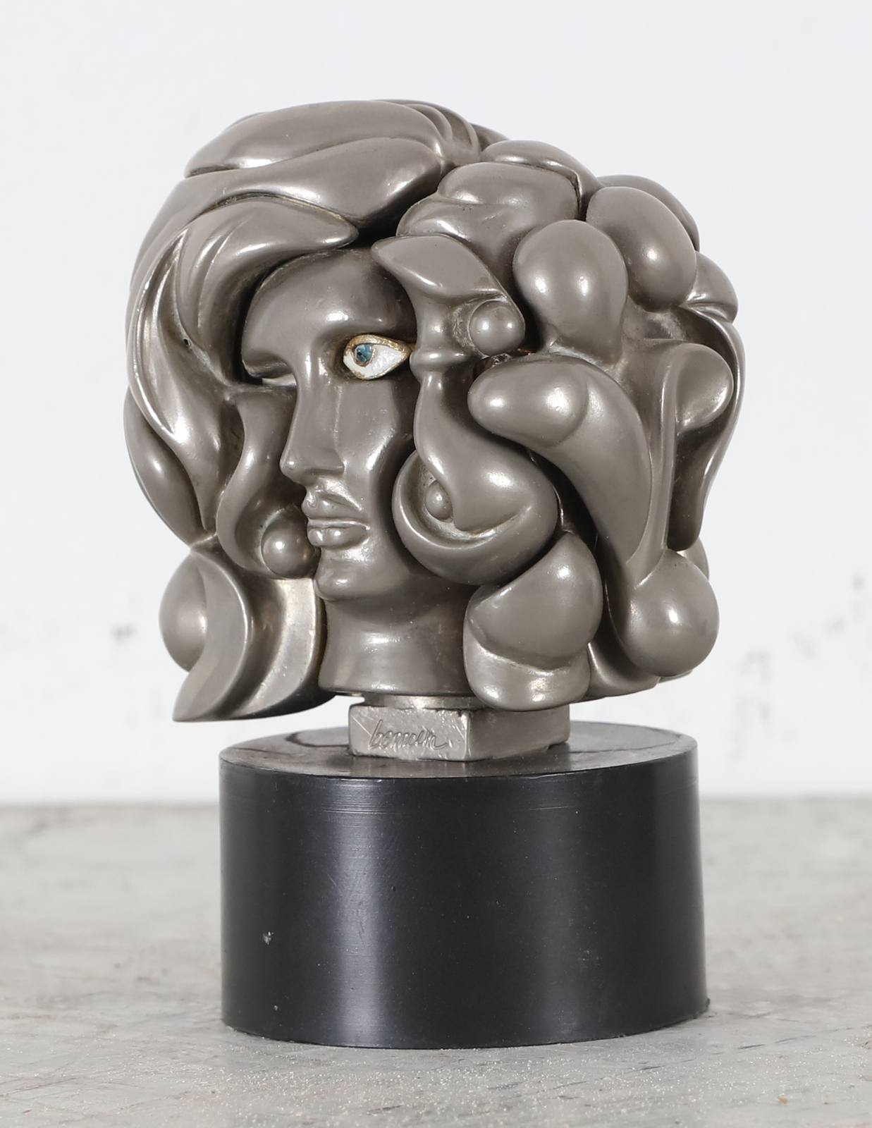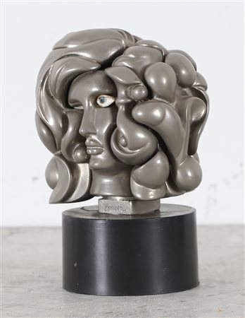 BERROCAL MIGUEL ORTIZ (1933 - 2006) Portrait di Michéle. 1969. Metallo. Cm 7,40 x 11,00 x 5,00. 4845/10000. Tiratura e firma incise alla base. Scultura smontabile composta da 17 pezzi. Pubblicazione: Berrocal, Tipografia Cremezzani, Brescia, 1974, pag.15, allegata all'opera.