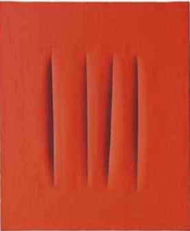 Lucio Fontana (1899-1968) Concetto Spaziale, [Attese] firma, titolo e iscrizione l. fontana "Concetto spaziale" vado a vedere la mostra di Soto (sul retro) idropittura su tela cm 55,3x46,3 Eseguito nel 1966 Opera registrata presso la Fondazione Lucio Fontana, Milano, n. 1900/140