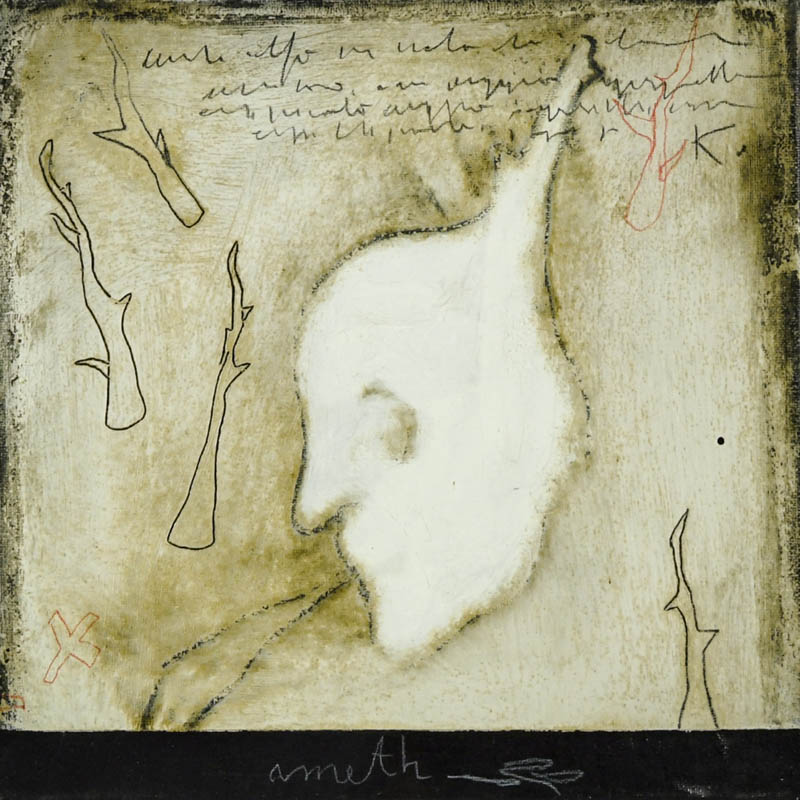Mirko Baricchi (La Spezia 1970 ) Ameth, 2007 Tecnica mista su tela, cm. 20x20x5 Titolo in basso al centro; Sul verso: firma e data.