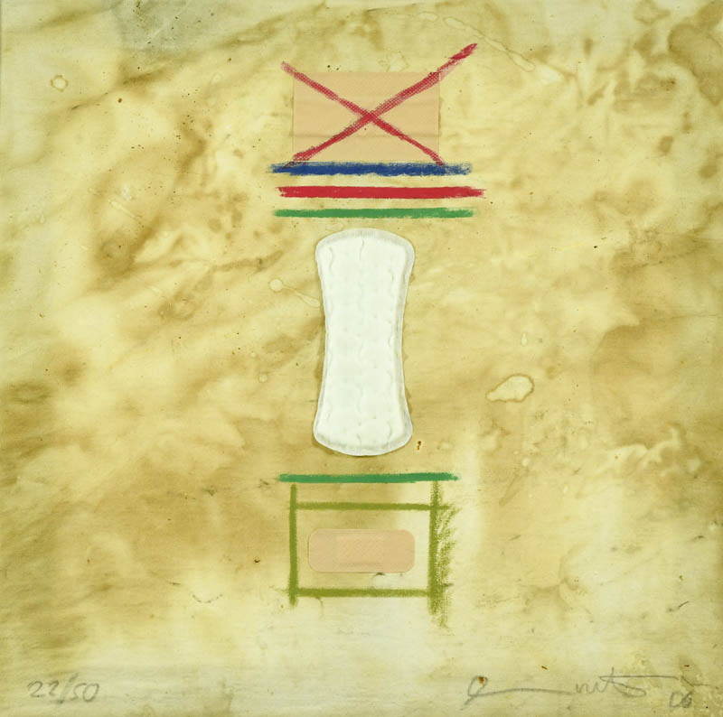 Hermann Nitsch (Vienna 1938 ) Senza titolo, 2006 Sangue, pastelli ad olio e collage su tela, cm. 50x50. Firma e data in basso a destra. Certificato di Autenticità a cura di Arteficium Kunstagentur, René Schmitt, su foto. Certificato di Provenienza Artesegno, Udine con foto. E- mail di conferma di Autenticità della Fondazione Morra. E- mail di conferma di Autenticità del Museo Nitsch di Napoli.