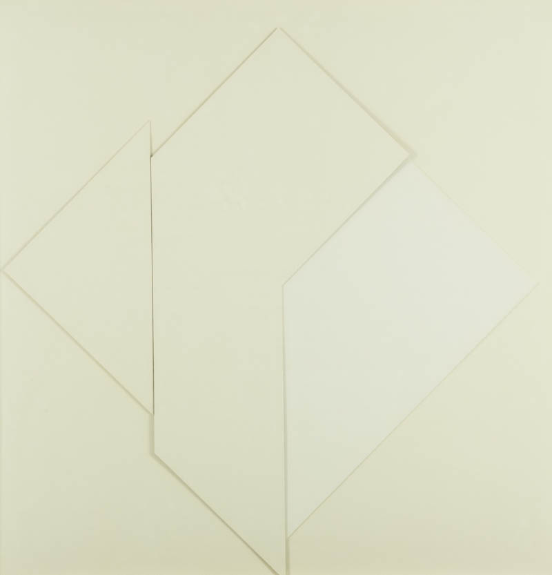 Sandro De Alexandris (Torino 1939 ) Rilievo - Collage 0013/3, 1970 Collage di cartoni bianchi su cartone, cm. 70x70 Firma e data in basso a destra; Sul verso: firma, data, titolo e descrizione; Etichetta e timbro dell'Artista con descrizione.