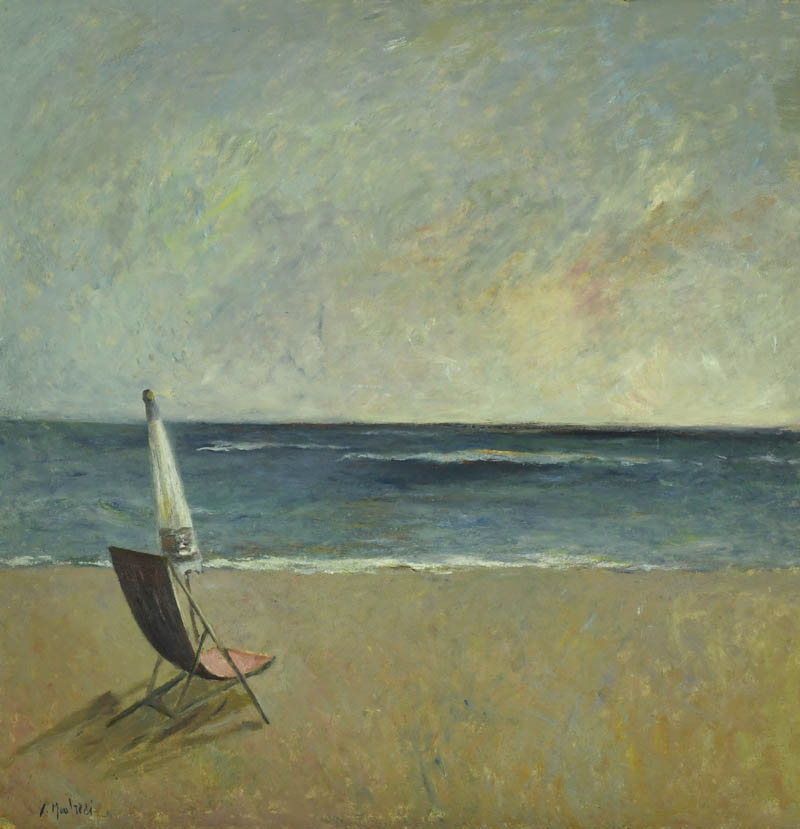 Giuseppe Manfredi (Seravezza (Lu) 1934 Montecatini Terme (Pt) 1987) Marina, Olio su cartone cm. 77x76,5. Firmato in basso a sinistra. Sul verso: timbro di provenienza.