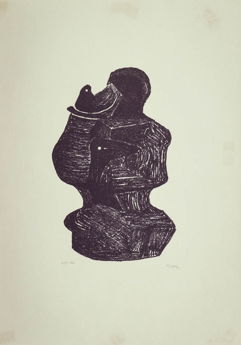 Henry Moore (Yorkshire 1898 Contea dello Hertfordshire 1986) Mother and Child, Litografia su carta, cm. 52x37 es. 40/100 Firma, data e dedica a persona in basso a sinistra. Certificato di Provenienza "Saletta d'Arte Viviani", Pisa, su foto.