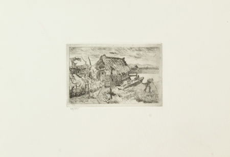 Ulvi Liegi Livorno 1858 - Livorno 1939 Paesaggio con figura, 1918 Acquaforte, cm. 12x17,5, su carta di cm. 35x50, es. XVI/XXV Firma e data sulla lastra in basso a sinistra, tiratura sulla carta in basso a sinistra.