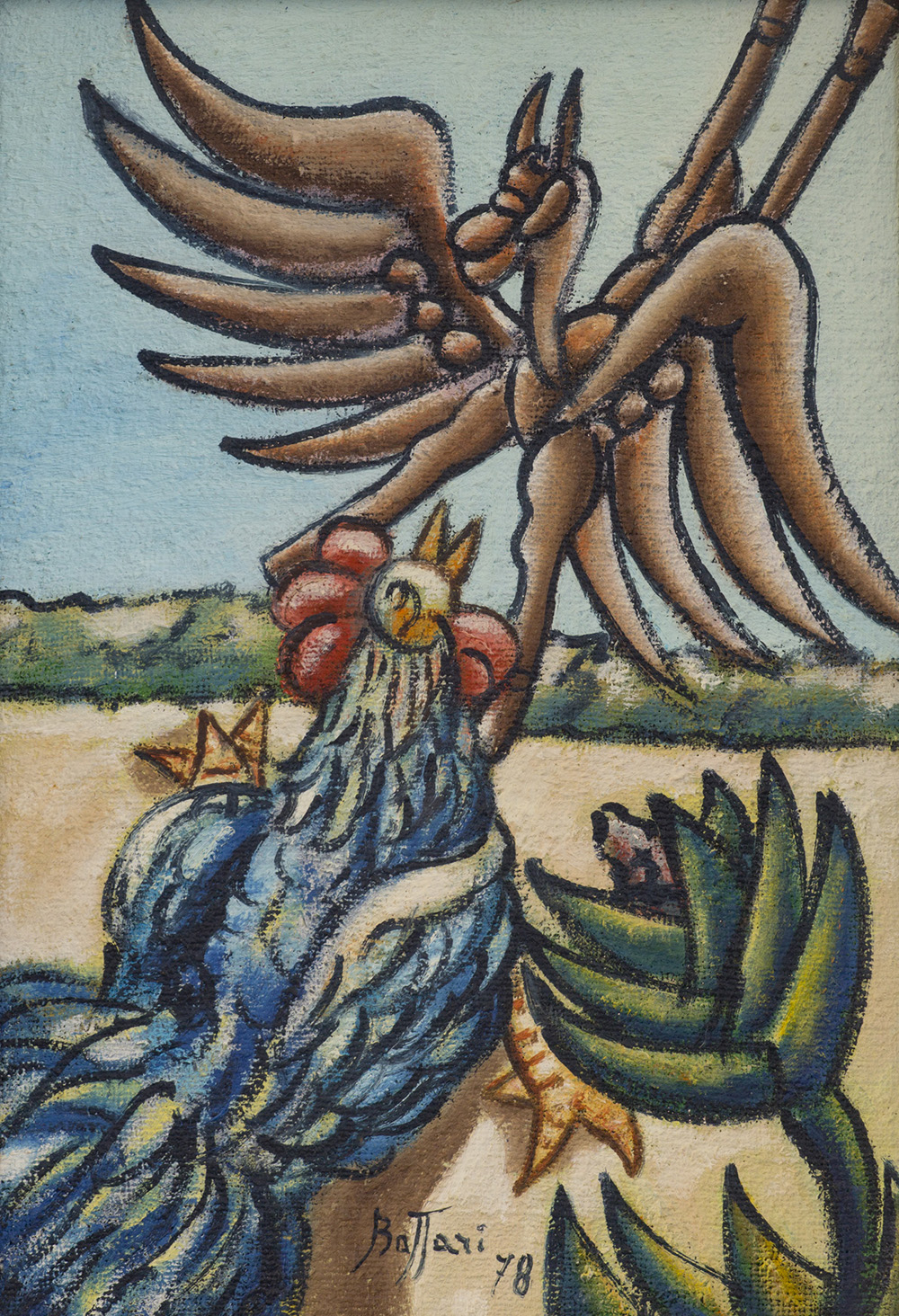 LORENZO BOTTARI (1949) La lotta, 1978 Olio su tela di Juta cm 50x35 Firma e...