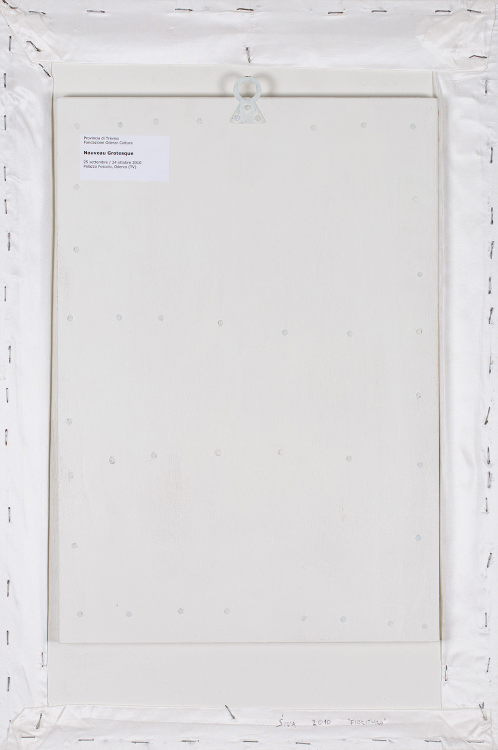 Etichetta della mostra Noveau Grotesque al retro