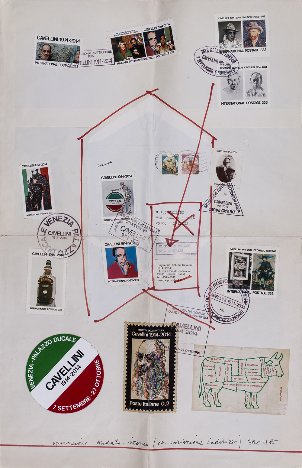 Cartiglio dell'Artista al retro con la seguente iscrizione "Opera d'arte di Cavellini da incorniciare e appendere"