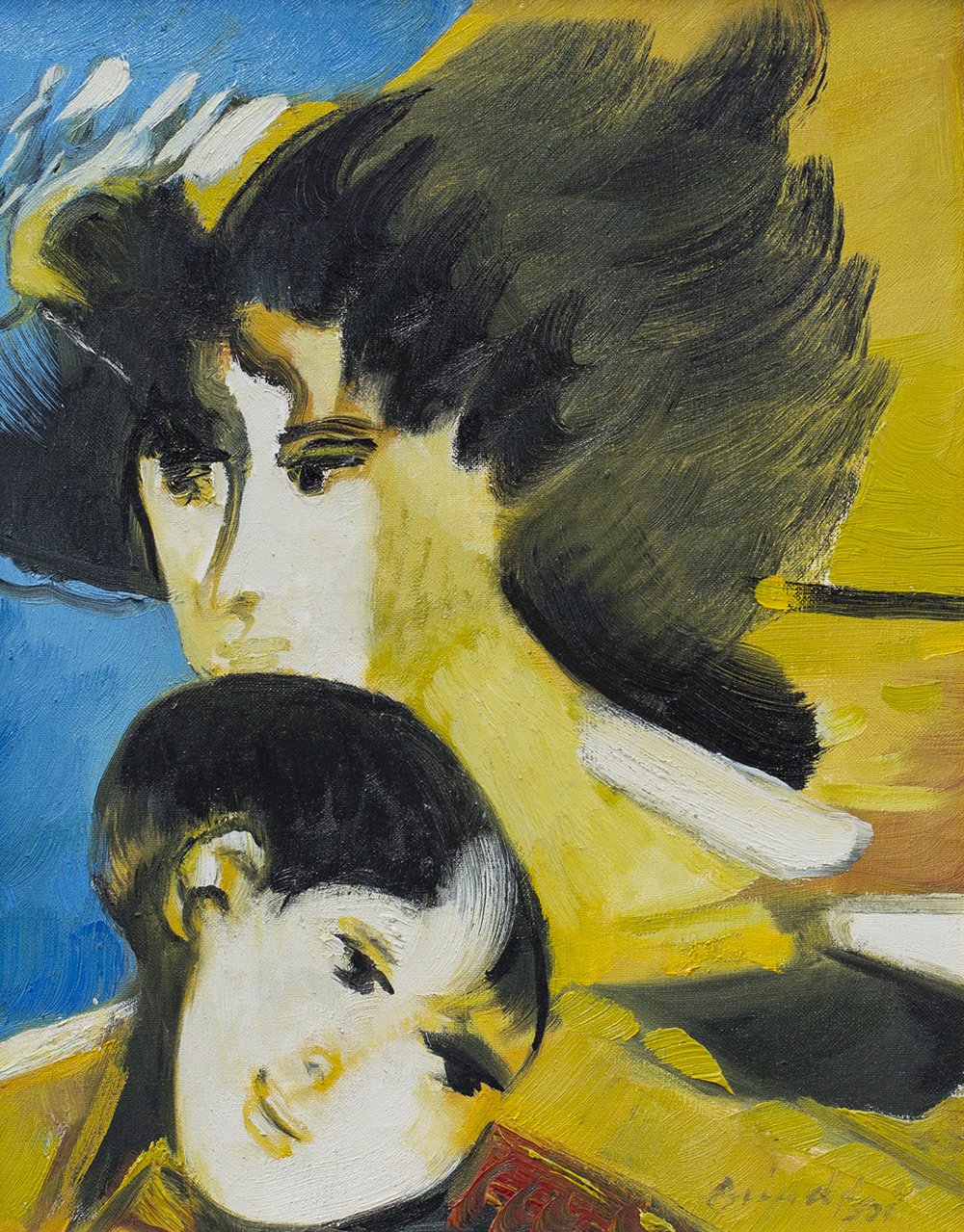 REMO BRINDISI Maternità Olio su tela cm 41x33 Firma al fronte Dedica...