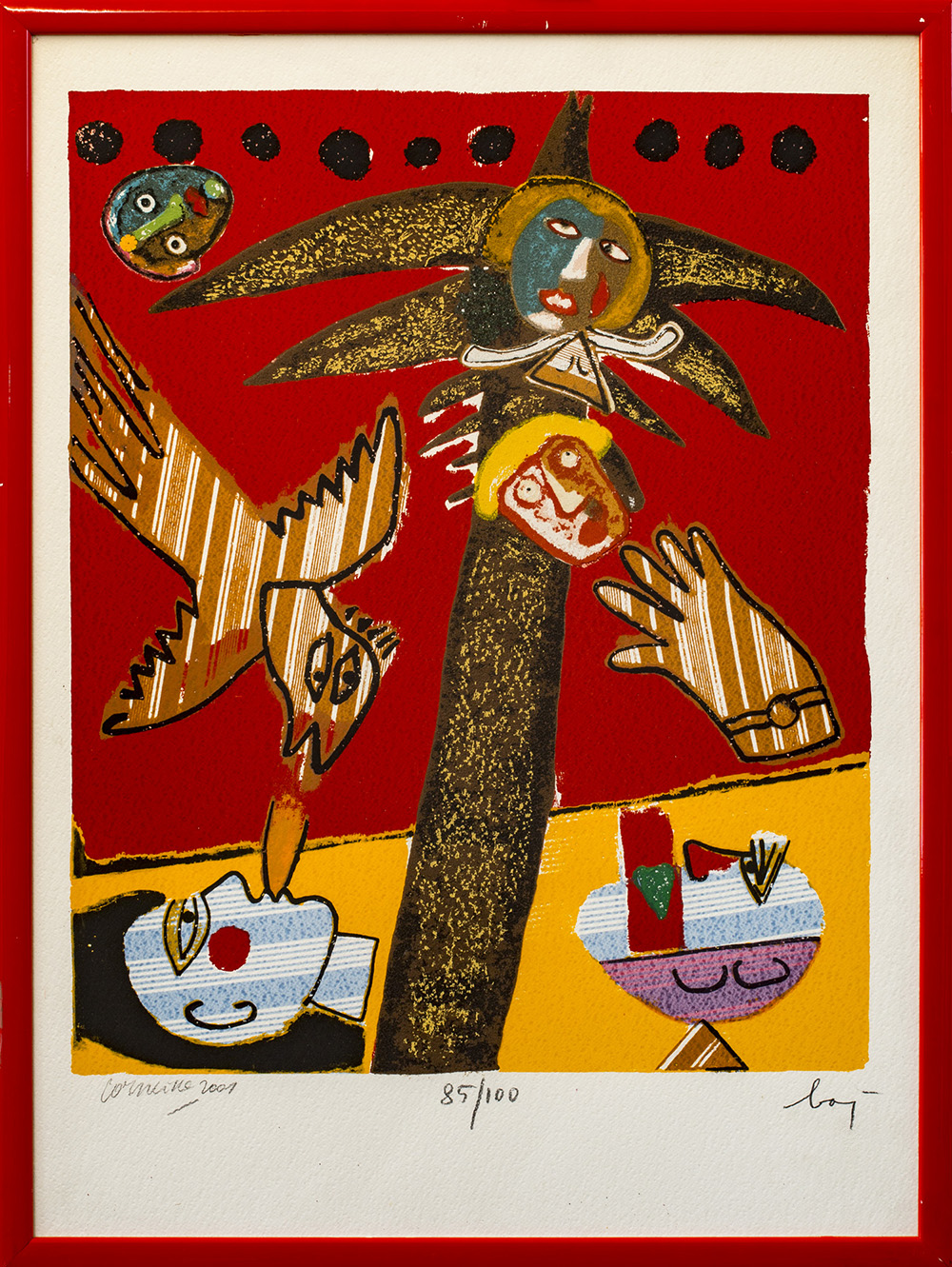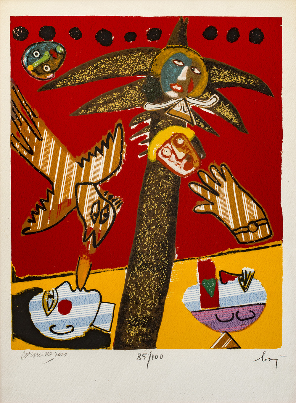 ENRICO BAJ E GUILLAUME CORNEILLE Senza Titolo, 2001 Serigrafia polimaterica...