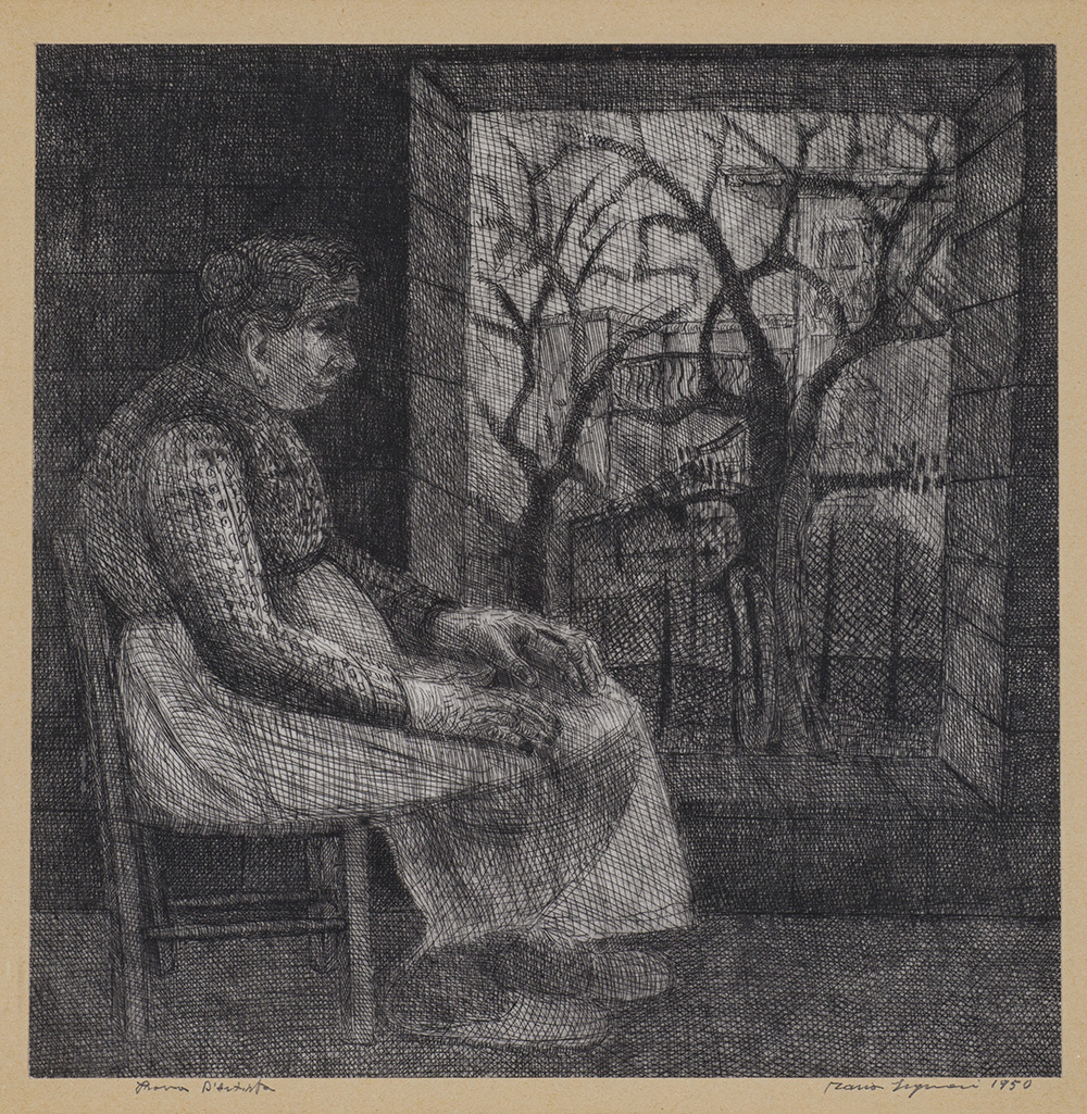 MARIO SIGNORI (1929) Senza titolo, 1950 Acquaforte applicata su cartoncino cm...