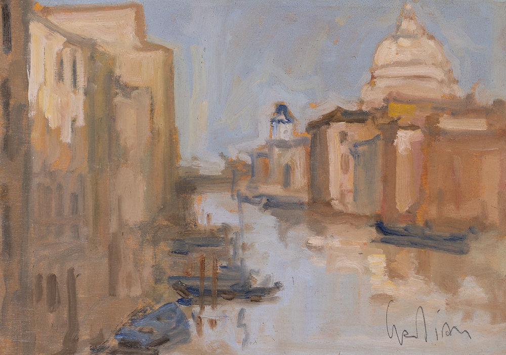 ALBERTO CANDIAN (1946) La Salute Olio su tavola cm 25x35 Firma al fronte...