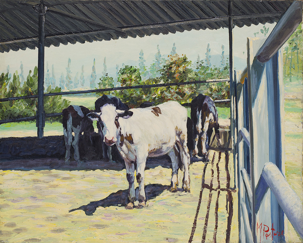MARIO PASTORE Fattoria, 1971 Olio su tela cm 40x50 Firma al fronte Timbro...