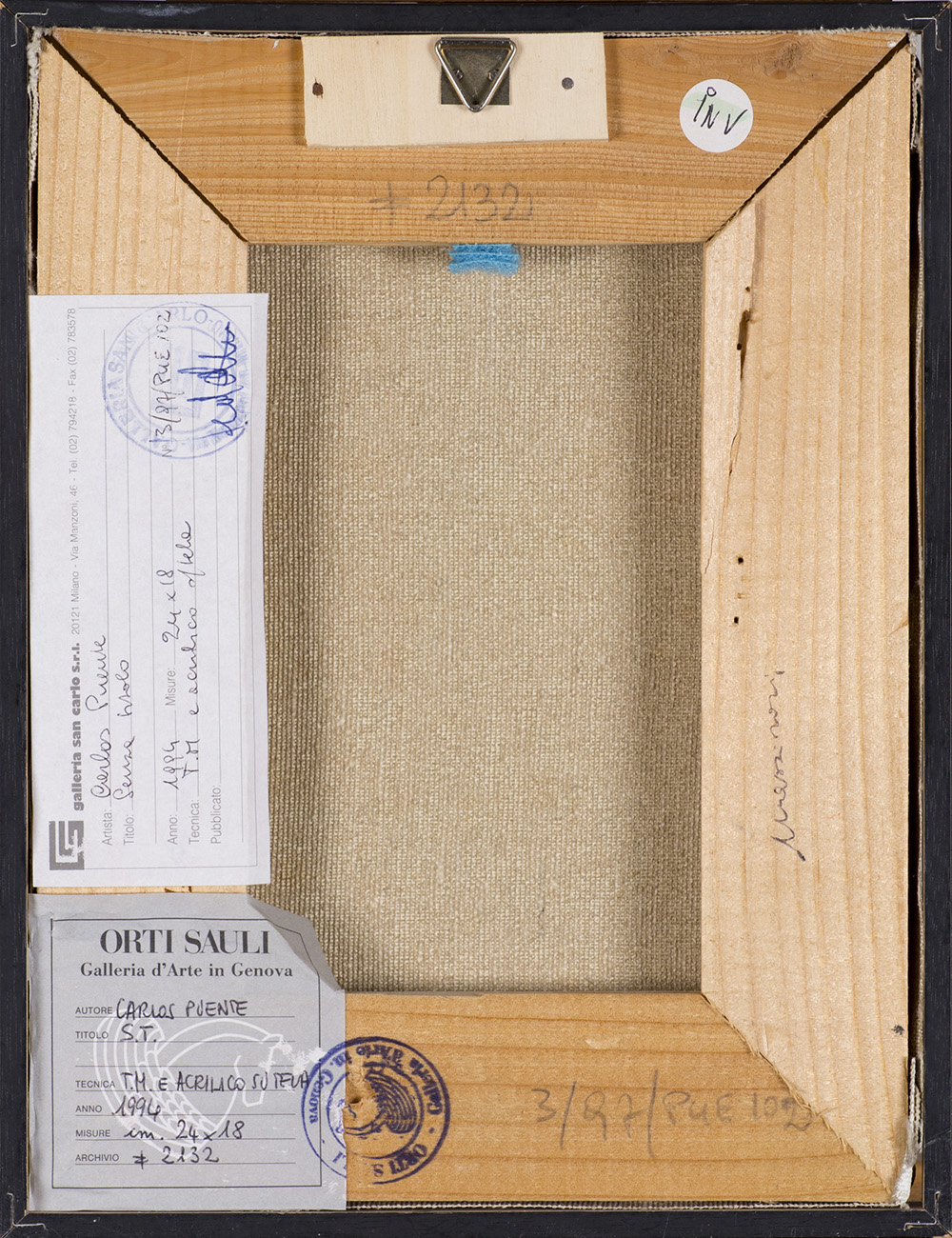 Etichetta e timbro della Galleria d'Arte San Carlo (MI) al retro
