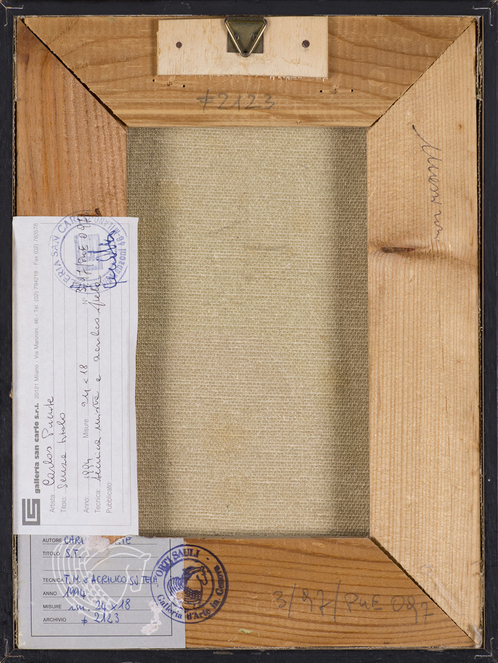 Etichetta e timbro della Galleria d'Arte San Carlo (MI) al retro