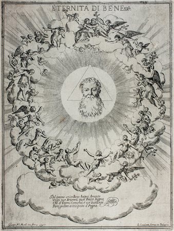 Giuseppe Maria Mitelli, ETERNITA' DI BENE.1696Acquaforte. mm 425x317....