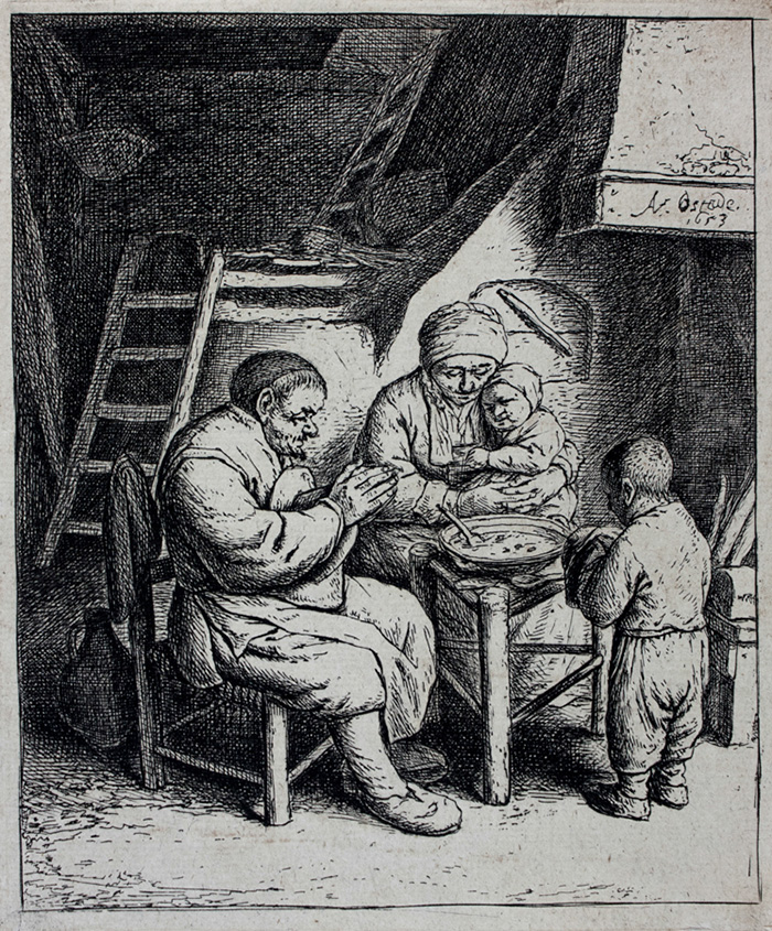 Adriaen (van) Ostade, Benedicite.1653Acquaforte. mm 155x130. Foglio:...