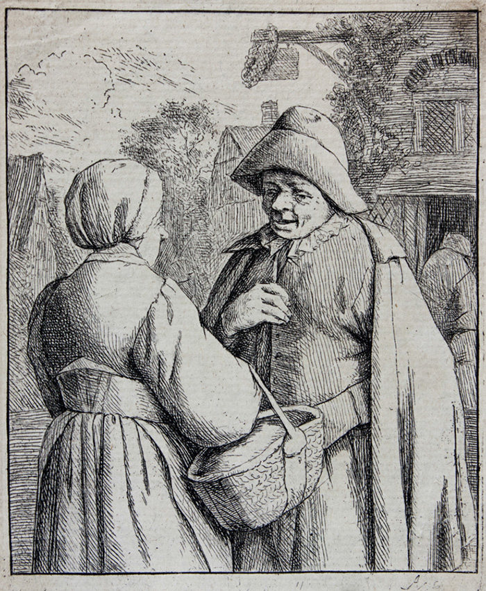 Adriaen (van) Ostade, Conversazione per strada.1675 ca.Acquaforte. mm...