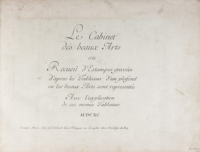 Charles Perrault, Le cabinet des beaux Arts ou Recueil d'Estampes gravées d'apres les Tableaux d'un plafond ou les beaux Arts sont representés. Aver l'explication de ces memes Tableaux.