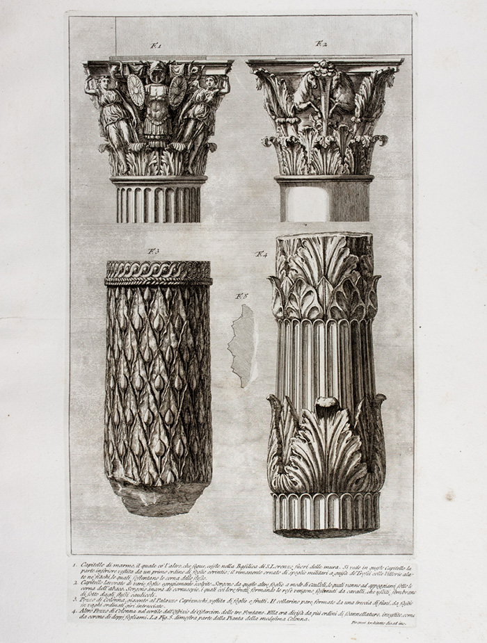 Giovanni Battista Piranesi, Lotto in 5 tavole da Trofei di Ottaviano Augusto.