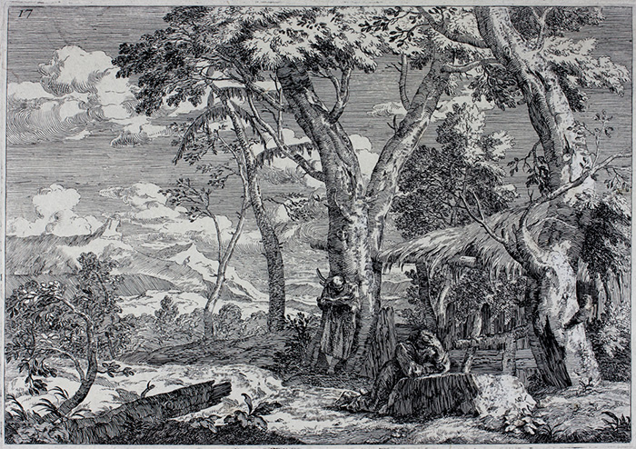 Marco Ricci, Paesaggio con due monaci.1730Acquaforte. mm 251x355....