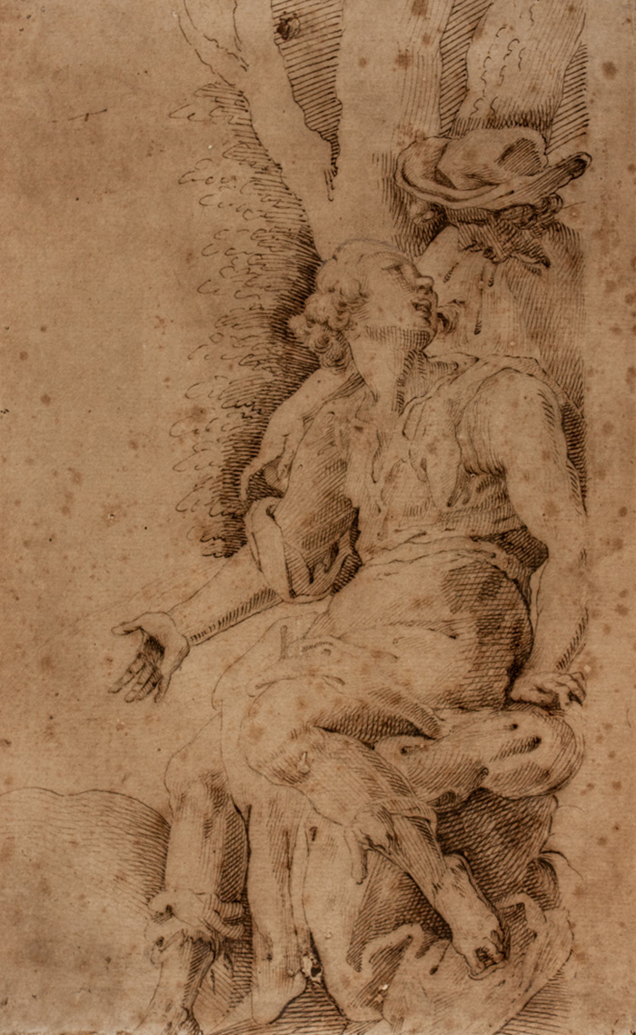 Anonimo del XVI secolo, Coppia in un bosco.Penna e inchiostro bruno su...