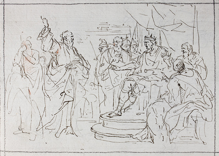 Anonimo veneziano del XVIII secoloDaniele davanti a Nabucodonosor (r). Studi per la figura di Nabucodonosor (v).