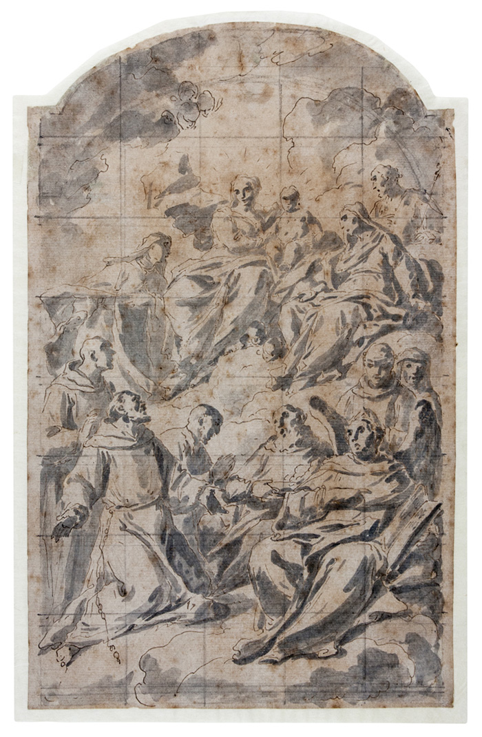 Scuola napoletana del XVIII secolo, Studio per pala d'altare con la Madonna in gloria e santi.