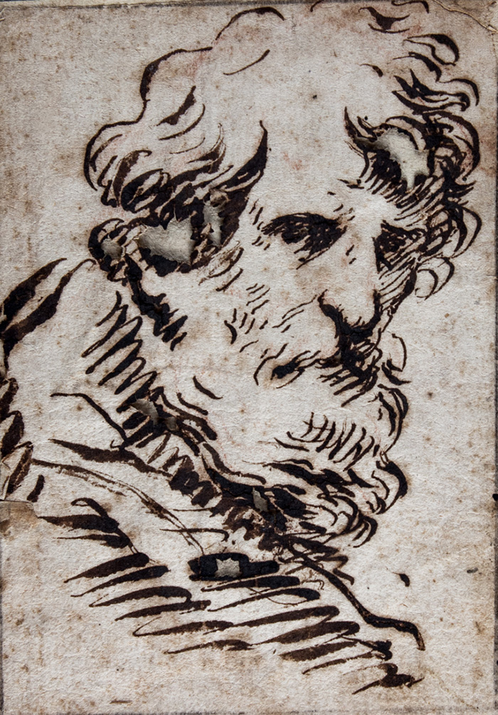 Penna e inchiostro bruno, pennello e acquerello seppia, su carta a vergelle sottili priva di filigrana. mm 95/100x68/75.Una serie di fogli riconducibili alla stessa mano è attribuita a "Pittore emiliano del XVIII secolo" in F. Pellegrini (a cura di), Da Tintoretto a Bison. Musei Civici di Padova. Disegni del Museo d'Arte. Secoli XVI-XVIII, catalogo della mostra, Padova, Civici Musei agli Eremitani, 20 febbraio-25 aprile 2005, nn. 308-335. (2)