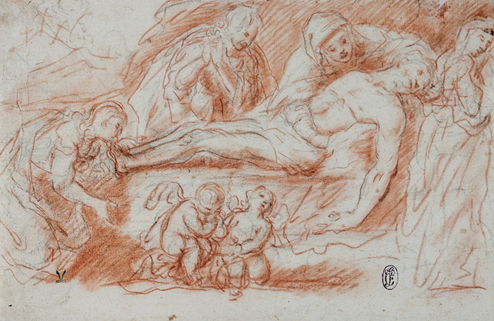Domenico Piola [attribuito a], Compianto sul Cristo morto.Matita...