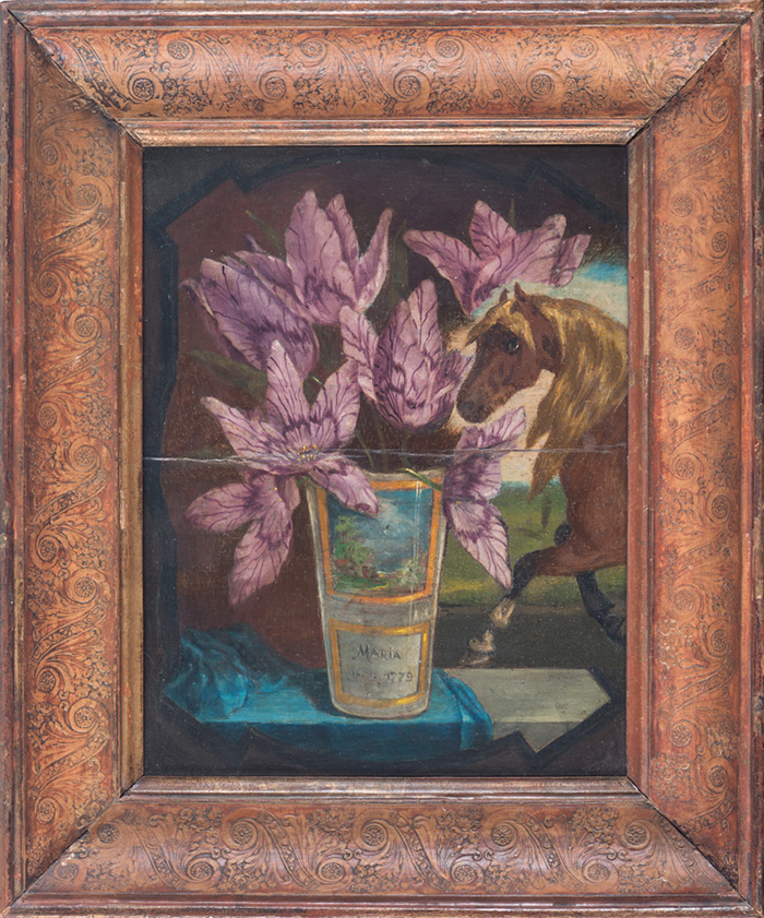 Johann Baptist Drechsler, Vaso di fiori e cavallo.1779Olio su tavola. cm...
