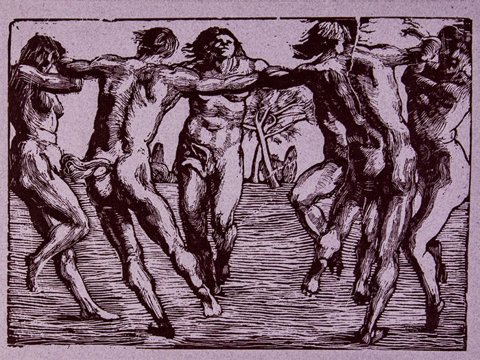 1) Illustrazione per Alfredo Oriani di Fernando Paolieri. Xilografia. mm 160x110. Foglio: mm 295x220. Da "L'Eroica", n. 8, 1912. 2) Girontondo. Copertina de "L'Eroica", fascicolo II, 1912. Xilografia. mm 125x175. Foglio: mm 295x215. 3) Illustrazione per Don Giovanni a Napoli di Alessandro Amfiteatroff. Xilografia. mm 95x140. Foglio: mm 285x225. Da "L'Eroica", n. 24-25, gennaio-febbraio 1914. Si aggiunge: Ettore di Giorgio, Annunciazione. Xilografia. mm 175x125. Foglio: mm 285x215. Da "L'Eroica", n. 13, 1913. (4)