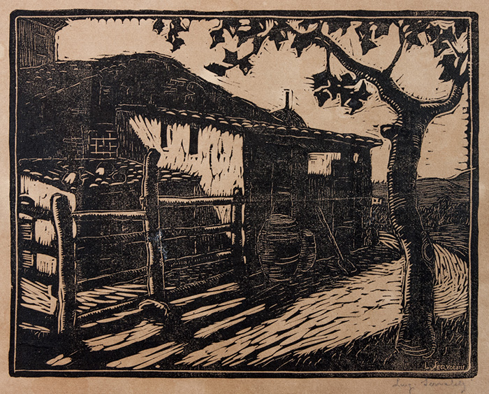 Acquaforte. mm 125x232. Foglio: mm 244x305. Da La caccia al fagiano, 1954. SI AGGIUNGE: Luigi Servolini, Casa colonica. Xilografia. mm 160x203. Foglio: mm 354x442. Firmata nella matrice in basso a destra e firmata a matita sotto, in basso a destra. (2)