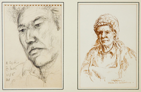 Giacomo Vaccaro Sassetta 1935 Dittico - "Volto", 1988, Biro su carta, cm. 15x10,5, dedica a persona e data in basso a sinistra; - "Ritratto di contadina", China su carta, cm. 15x10,5, firma e titolo in basso a destra.