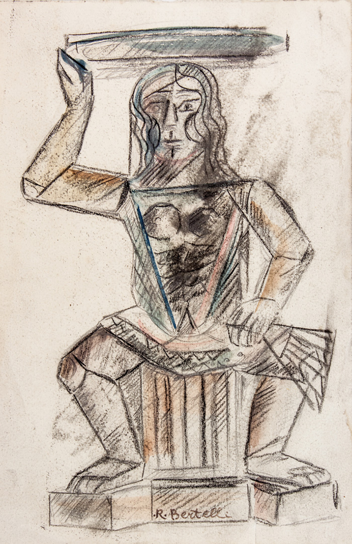 Renato Bertelli, Canefora esotica. Pastello e carboncino su carta. mm...