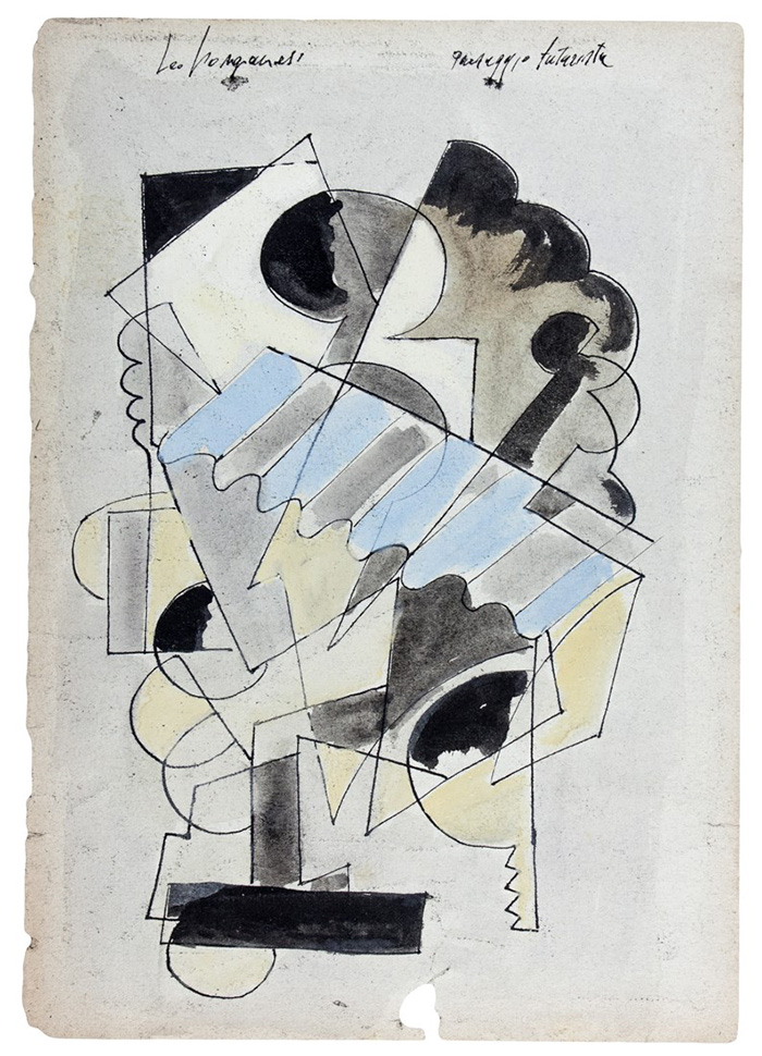 Leo Longanesi, Paesaggio futurista.1920 ca.Penna, inchiostro e...