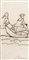 Mino Maccari, Due figure in barca. Carboncino su cartoncino. mm 295x145....