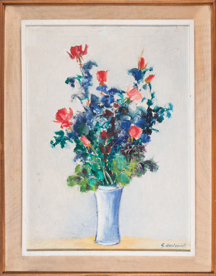Giovanni Omiccioli, Vaso di fiori.Olio su tela. cm 72x52. Firmato in...