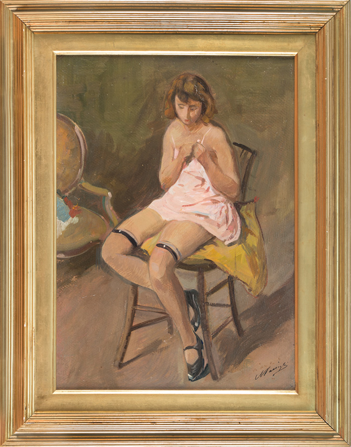 Carlo Passigli, Figura femminile seduta.Olio su tavola. cm 47x34....