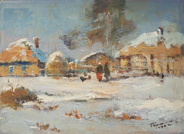 ALEXANDER POLISCHUK Ucraina 1951 "Inverno in thazta" 1990 34x46,5 olio su...