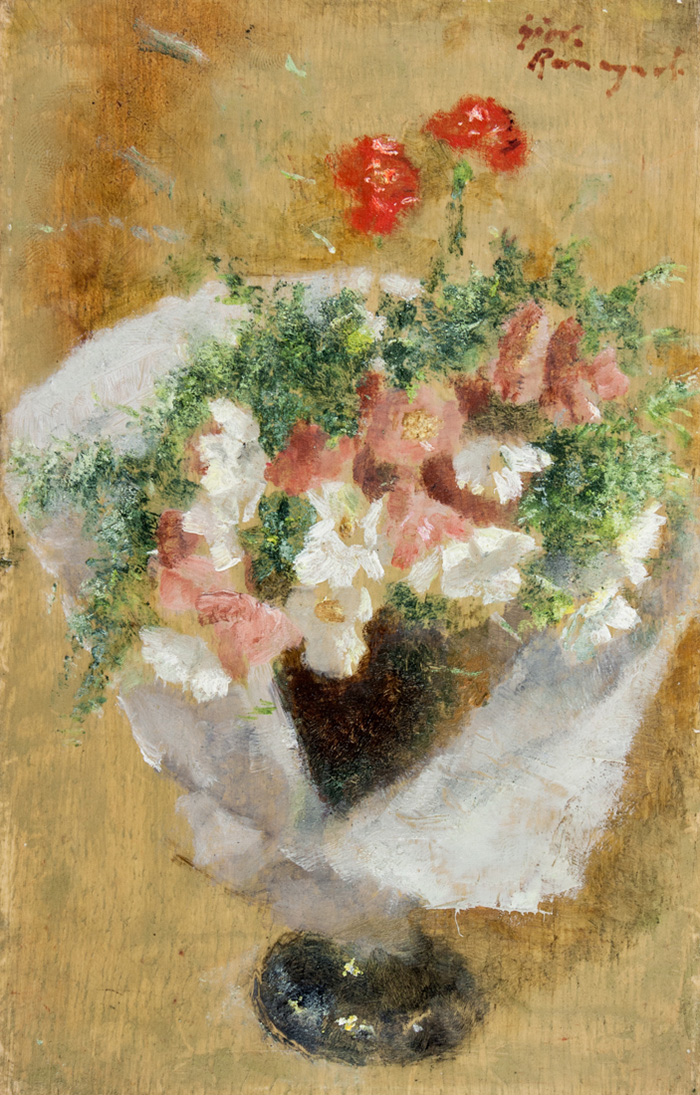 Giovanni Romagnoli, Vaso di fiori. Olio su tavoletta. cm 22x14. Firmato...