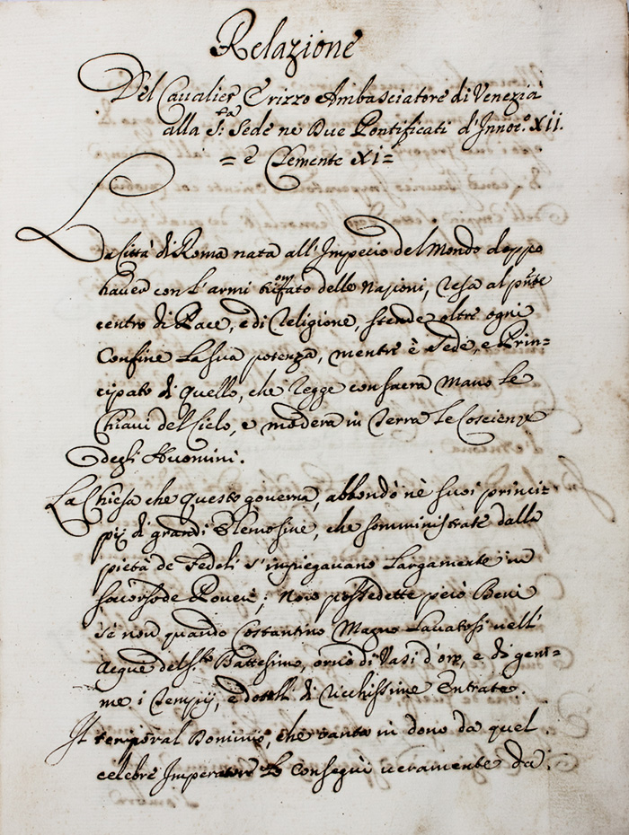 Erizzo Nicolò, Relazione del Cavalier Erizzo Ambasciatore di Venezia alla S.Sede ne' Due Pontificati d'Innocenzo XII e Clemente XI.