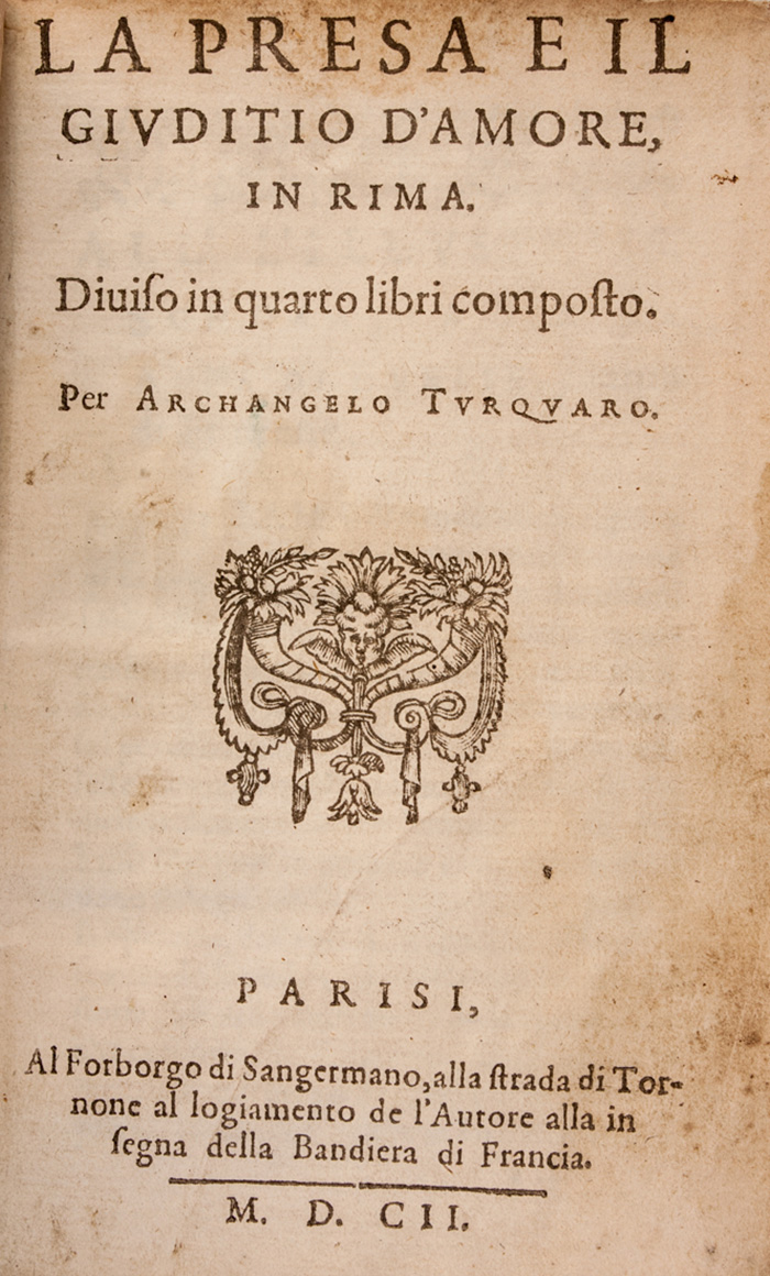 Tuccaro Arcangelo, La presa e il giuditio d'amore, diviso in quarto libri composto.