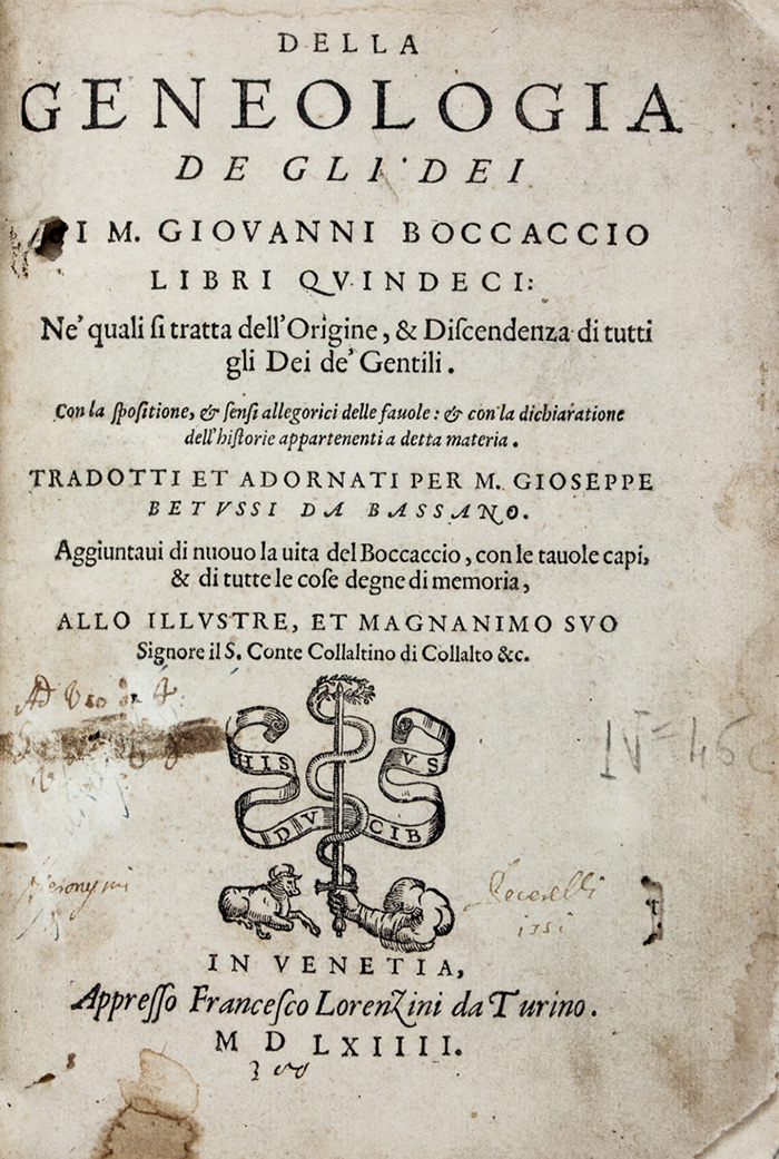 Boccaccio Giovanni, Della geneologia de gli Dei... In Venetia: Appresso...