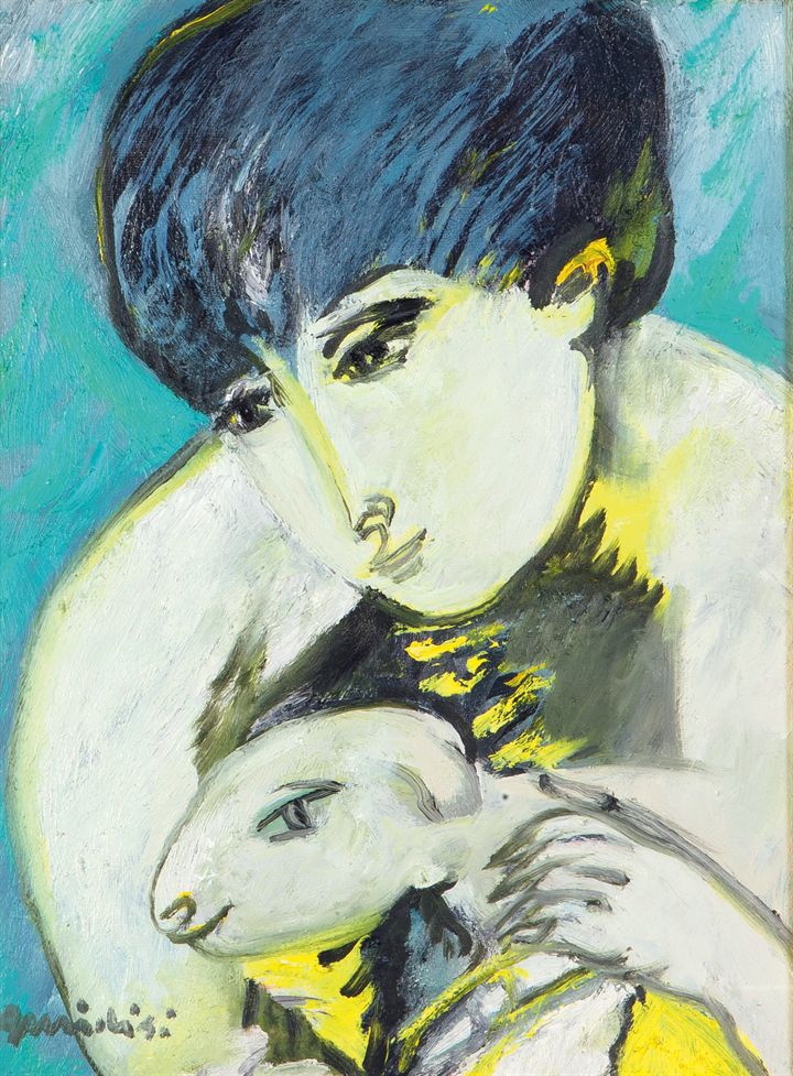 BRINDISI REMO Roma 1918 - 1996 Milano "Pastorale" 1989 40x30 olio su tela...